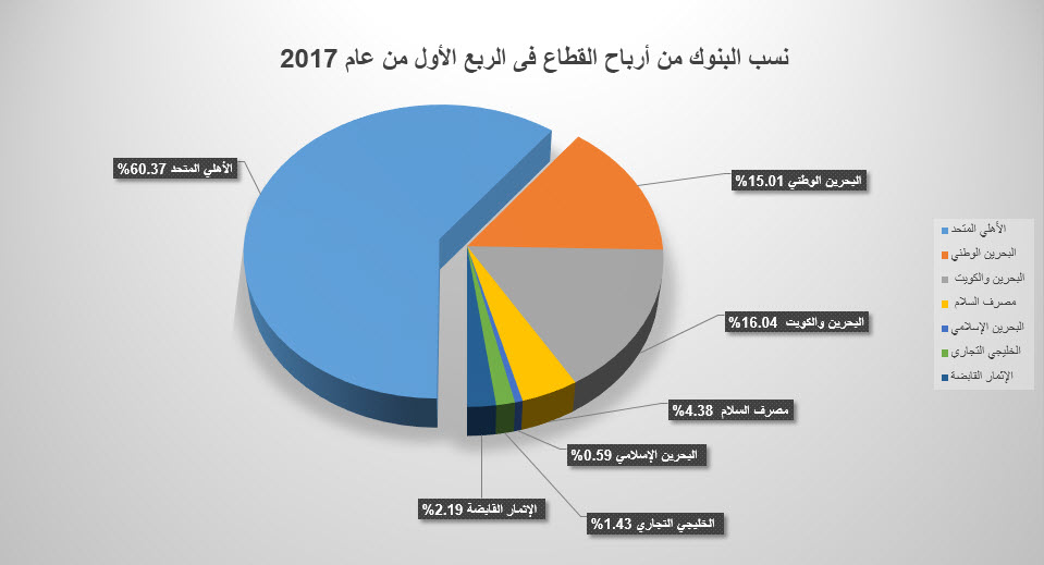 في حين سجل البحرين الإسلامي، أقل الأرباح المُحققة خلال الثلاثة أشهر الأولى من العام الجاري، من خلال أرباح قيمتها 583 ألف دينار، مقابل 1.7 مليون دينار بالربع الأول من 2016، بتراجع نسبته 66%، حيث قُدرت نسبة الأرباح نحو 0.59% من قيمة الأرباح الاجمالية لقطاع البنوك.