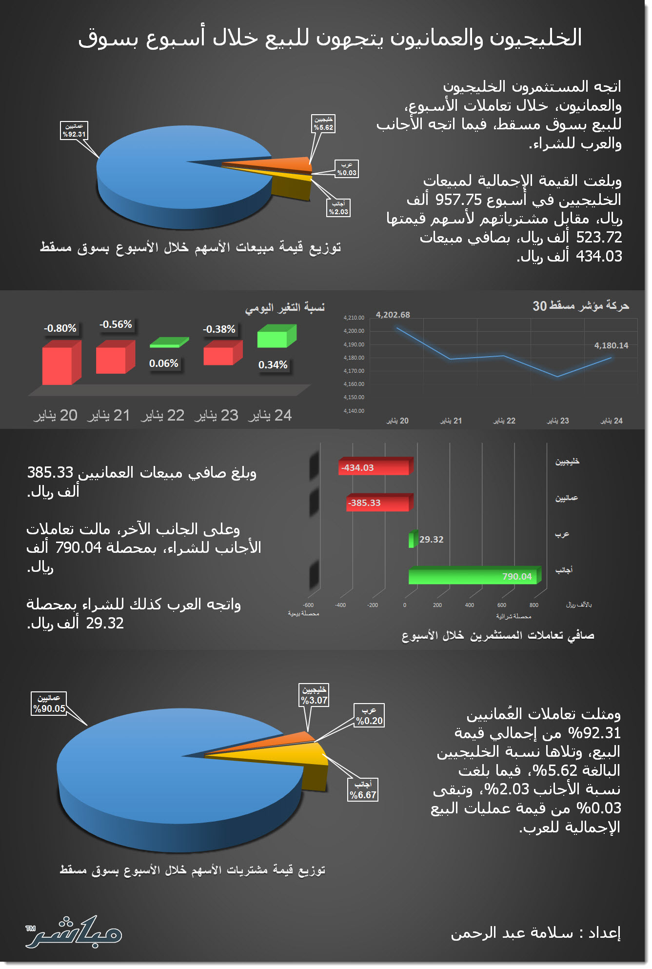 إنفوجراف.. الأجانب يقودون عمليات البيع بسوق مسقط خلال عام 2018