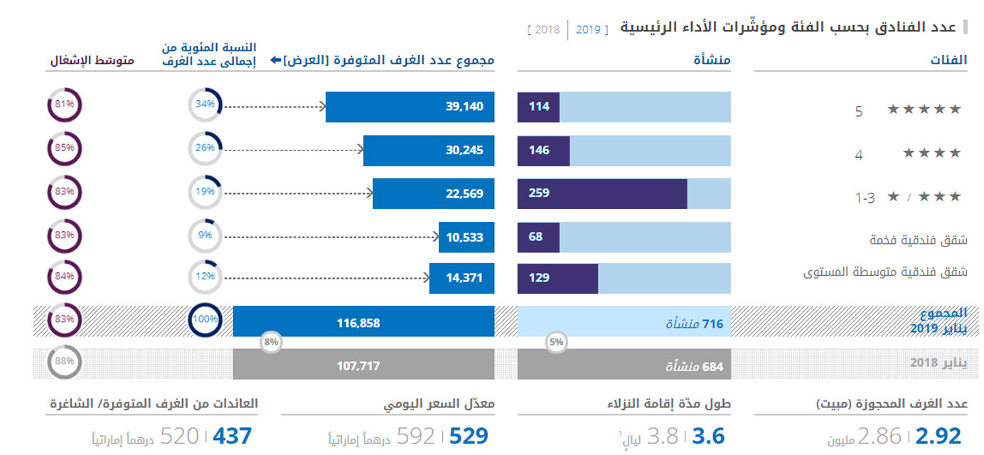 ولفتت البيانات إلى أن متوسط العائد على الغرفة بالإمارة خلال تلك الفترة وصل إلى نحو 437 درهماً.