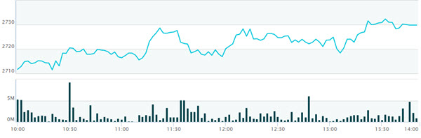 وارتفع المؤشر العام اليوم بنسبة 1.22% رابحاً 33.01 نقطة، ليصل إلى 2729.86 نقطة، متوافقاً مع الأداء القياسي الذي سجله بالجلسة الماضية.