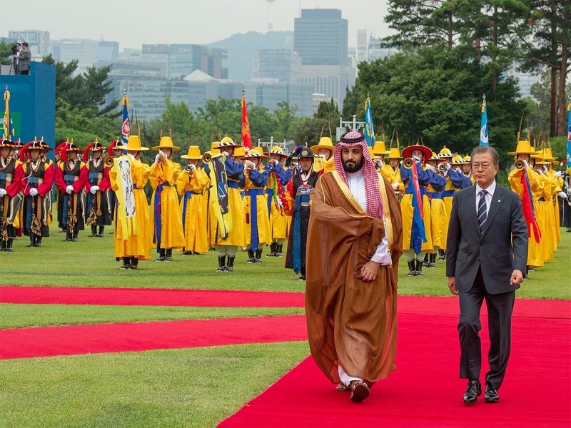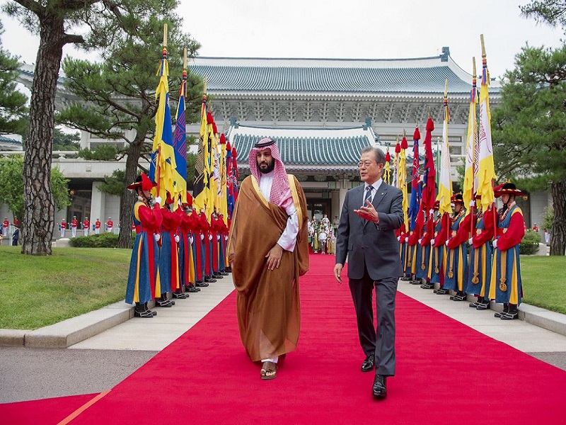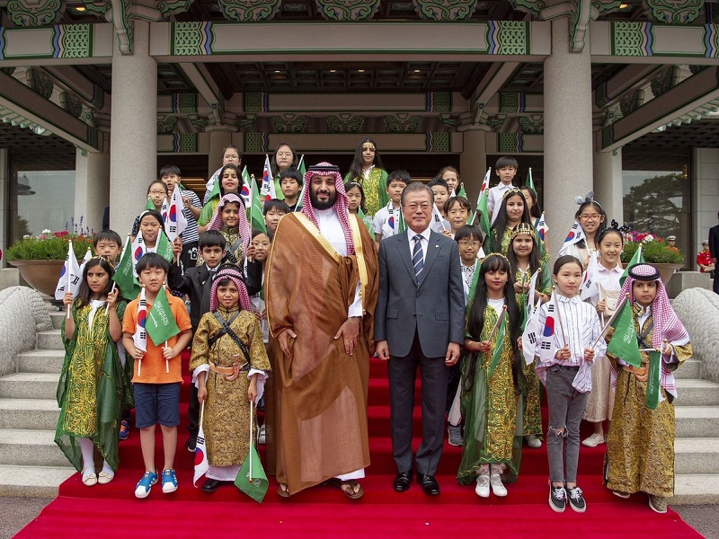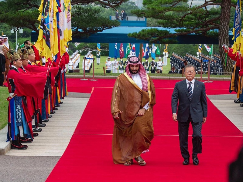 وكان رئيس جمهورية كوريا الجنوبية مون جاي إن على رأس مستقبلي ولي العهد الأمير محمد بن سلمان لدى وصوله إلى كوريا.