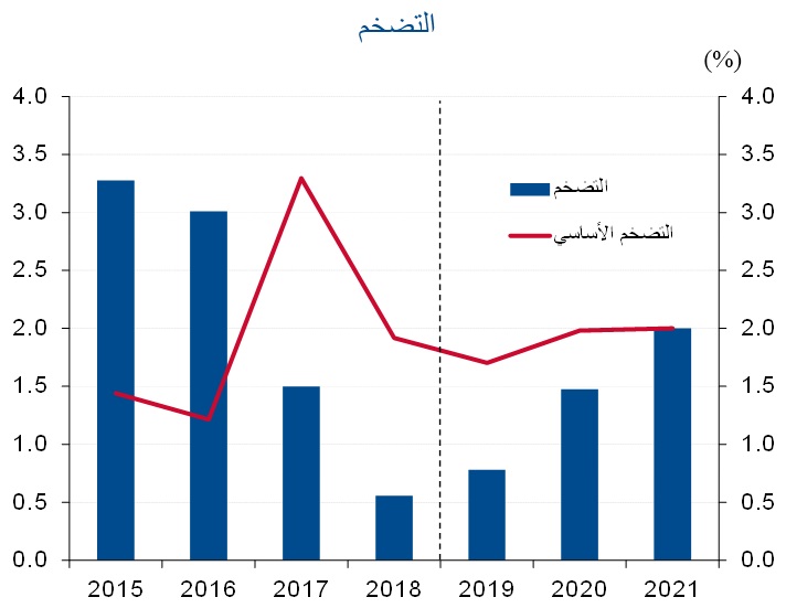 أما على صعيد التضخم، توقع التقرير أن يظل معدله منخفضاً عند مستوى 1 - 2 بالمائة؛ نظراً لاستمرار تراجع الإيجارات السكنية خلال الربع الأول من 2019، وتأثر أسعار المواد الغذائية بكل من الدعم المحلي وانخفاض الأسعار الدولية.