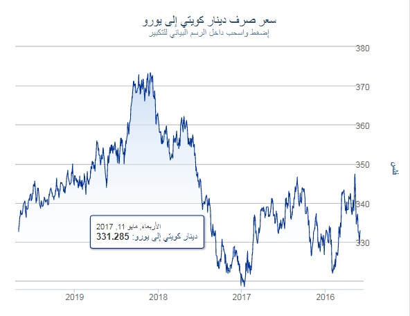 وبالإضافة إلى ذلك ارتفع الدينار الكويتي أمام اليورو بنسبة 0.42 بالمائة، إلى 332.615 فلس وهو أدنى مستوى لعملة الاتحاد الأوروبي منذ مايو/ أيار 2017، وذلك بضغط تطورات الأوضاع في بريطانيا، وإيطاليا، والتراجعات العالمية للعملة.