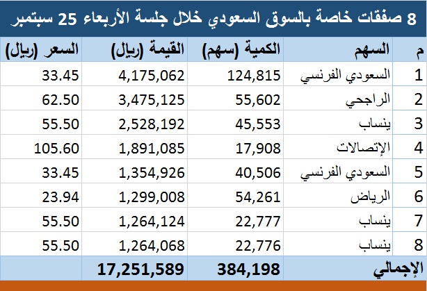محدث..8 صفقات خاصة بالسوق السعودي بـ 17.25 مليون ريال