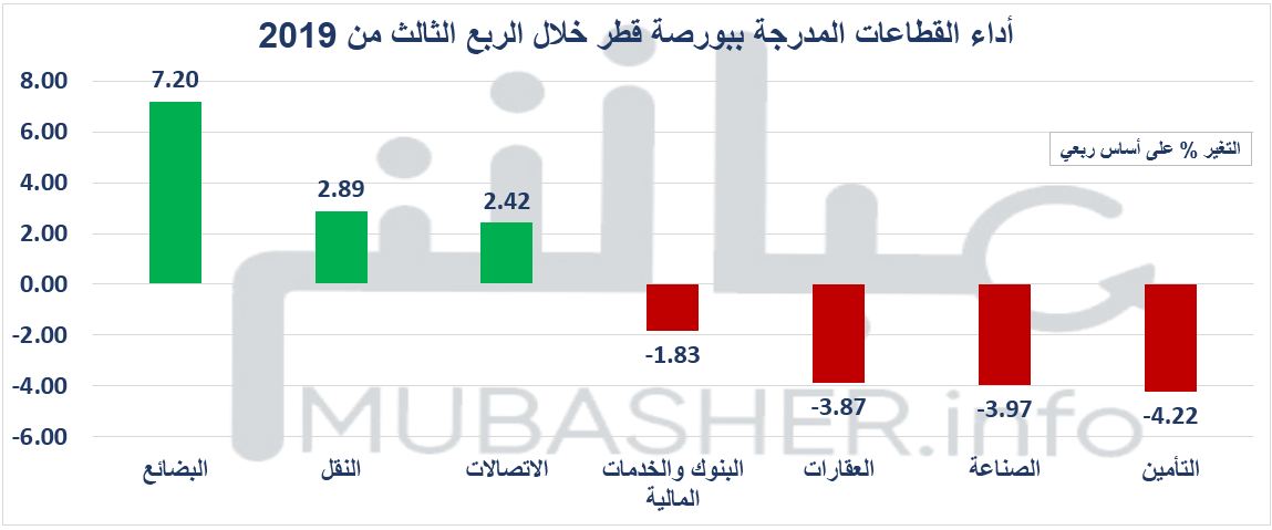 وضغط على الأداء الربعي للمؤشر العام تراجع 4 قطاعات تقدمها التأمين بـ4.22 بالمائة، فيما ارتفعت 3 قطاعات بقيادة البضائع بـ7.20 بالمائة.