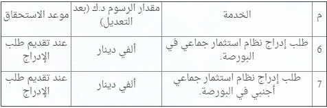 وجاء في المادة الأولى من القرار تعديل البند السادس والسابع من جدول الرسوم الخاص بالهيئة على النحو التالي: