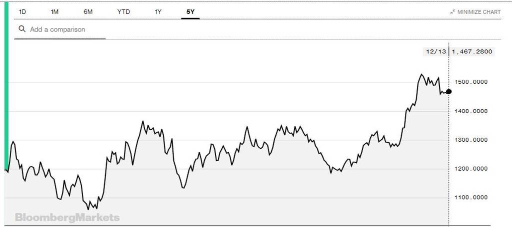 أداء الذهب في آخر 5 سنوات - (المصدر: وكالة بلومبرج)
