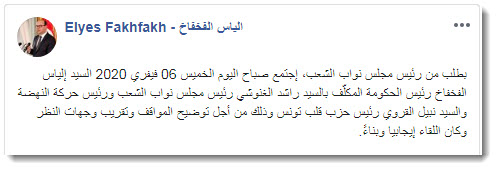 مباشر: اجتمع اليوم إلياس الفخفاخ المكلف بتكوين الحكومة التونسية، برئيس مجلس نواب الشعب ورئيس حركة النهضة راشد الغنوشي، ورئيس حزب قلب تونس نبيل القروي.