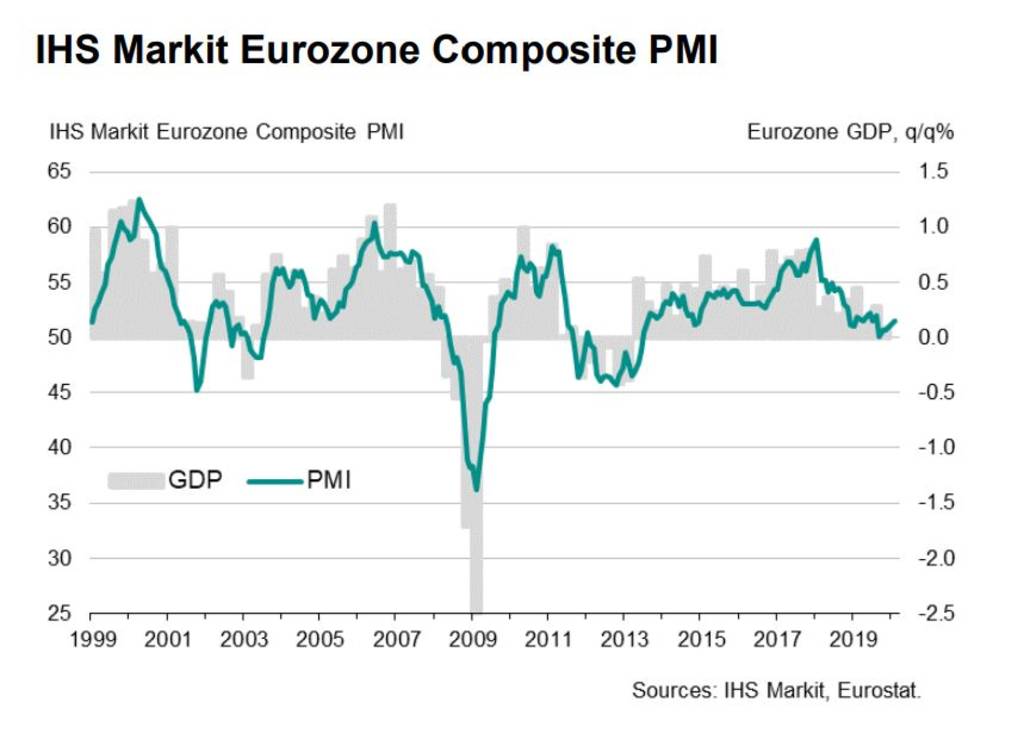 ويعني ذلك توسع النشاط الاقتصادي في منطقة اليورو؛ نظراً لتسجيل قراءة أعلى من 50 نقطة وهي الحد الفاصل بين التوسع والانكماش.