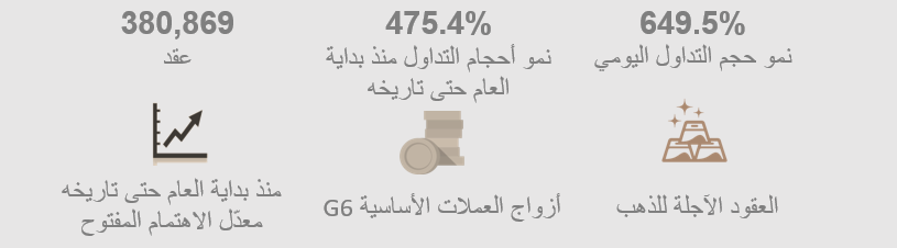 وفي مؤشر آخر على النمو المستدام الذي تحققه البورصة من حيث معدلات الاهتمام والسيولة، سجّل معدّل الاهتمام المفتوح منذ بداية الشهر الماضي 381 ألف عقد، مقارنة مع 269 ألفاً لنفس الفترة من العام الماضي.
