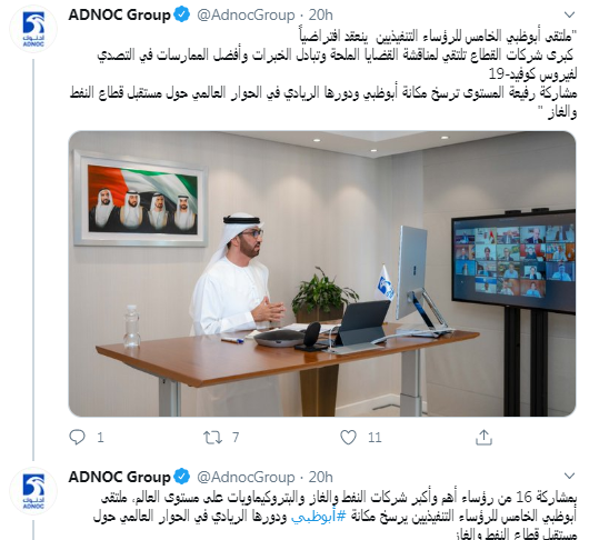 وتعقد أدنوك هذه النسخة الافتراضية الخاصة من ملتقى أبوظبي للرؤساء التنفيذيين لمناقشة القضايا الملحة التي تواجه القطاع حالياً إضافة إلى الفرص المتاحة.