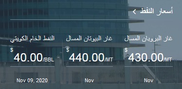 الكويت - مباشر: تراجع سعر برميل النفط الكويتي أمس الاثنين، بواقع 16 سنتاً ليصل إلى 40 دولاراً، مقابل 40.16 دولار للبرميل يوم الجمعة الماضي، وذلك وفقاً للسعر المُعلن من مؤسسة البترول الكويتية.