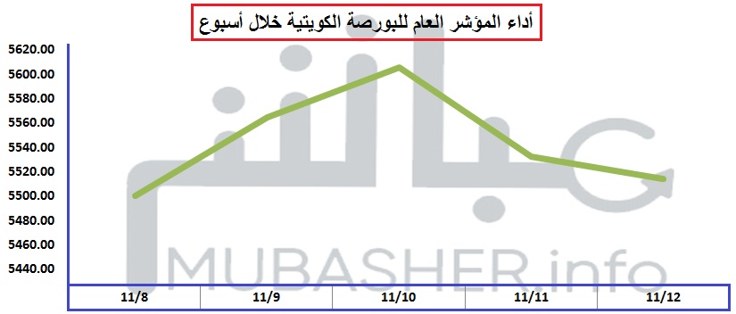 وجاءت المحصلة الإجمالية الأسبوعية للمؤشر العام مرتفعة 0.72% عند مستوى 5514.29 نقطة رابحاً 39.44 نقطة مقارنة بإقفال الأسبوع الماضي عند 5474.85 نقطة.