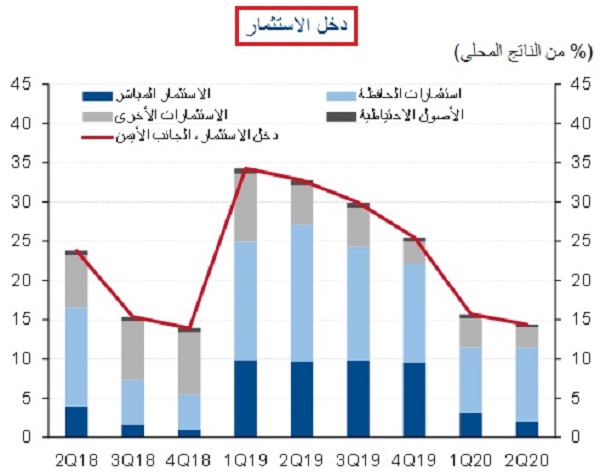 أما بالنسبة لصافي التدفقات للداخل من "الاستثمارات الأخرى" فقد تراجعت بصفة رئيسية نتيجة لانخفاض تدفقات الودائع الحكومية للداخل إلى 2.6 مليار دينار، مقابل 4.6 مليار دينار بالربع الأول من 2020، في حين تراجعت ودائع غير المقيمين في البنوك المحلية بمقدار 1.3 مليار دينار بالربع الثاني من العام.