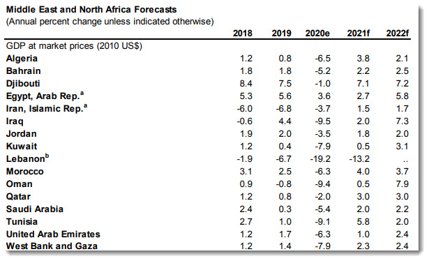 وأضاف البنك الدولي بأن التعافي الاقتصادي بالمنطقة يتوقف على قدرتها على احتواء تأثر جائحة كورونا، واستقرار أسعار النفط، وعدم تصاعد التوترات الجيوسياسية، وافتراض توزيع لقاح لفيروس كورونا في النصف الثاني من 2021.