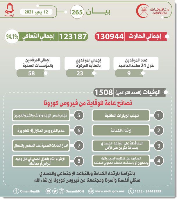 الصحة العُمانية تسجل "صفر" حالات وفاة جديدة بفيروس كورونا